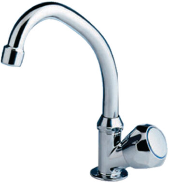 Chrome plated brass fold down cold water tap with a chrome plated plastic knob. Ideal for installing in a sink, under a seat, or in a bait station. Vertical or horizontal installation. 3/8\" Male BSP threaded shaft with 1/2\" male NPT nylon adapter. 5/8\" Mounting hole.