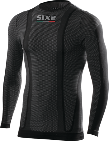 SIXS long-sleeve round neck jersey for children from 4 to 12 years of age. The Carbon Underwear fabric lets the skin breath and ensures thermoregulation of the body in any weather condition (outdoors or indoors). The long sleeve hugs every part of the arm to keep the skin fresh and lies between the skin and a top garment. It also slightly protects against cool drafts if a short-sleeve top garment is worn. Antistatic system : the carbon yarn isolates the static electricity caused by the rubbing of fabrics Seamless technology : seamless garment on the torso to provide absolute comfort Materials : Carbon Underwear Breathability and thermoregulation without compromise. Perfect for all seasons of the year. Antistatic fabric Breathability:\nThermoregulation: Wind protection: H2O protection: 77% Polypropylene, 15% Polyamide, 5% Elastomer, 3% Carbon Fiber