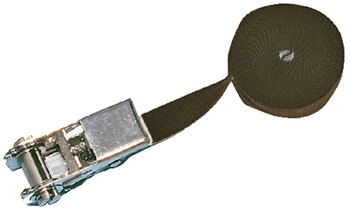1\" nylon webbing with all stainless steel ratchet and two \"S\" hooks coated to prevent scratching. Total corrosion resistance.