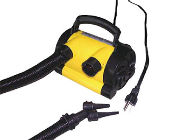 Inflate & deflate at unprecedented speed. Peak pressure is 2.5 psi. Four valve adapters, 10 ft. power cord, pressure release valve.
