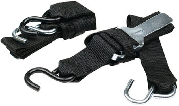 Strong-2\" wide webbing. Quick-release (over-center) buckle. Zinc alloy plated finish. Heavy-gauge, vinyl-coated, corrosion-resistant S-hook. Hook-N-Loop closure secures the buckle handle in the lock position. Protective pad behind buckle prevents marring and scratching on gel coated or painted surfaces.
