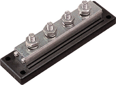 These Buss Bar Stud Terminal Blocks are primarily used to route and connect power or ground circuits. The raised bus provides easy access on a single stud, making it useful for consolidating multiple wires or feeding multiple circuits. Constructed of tin plated brass and ABS. Maximum: 48VDC. Installs with #10 RH fasteners (not included).
