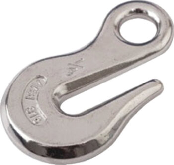 Its unique latch prevents the chain from slipping out of the hook when tension is not applied on the rope. This grab hook will fit either 6 mm (1/4") or 7 mm (5/16") chain. Equipped with 3 links of 7 mm (5/16") chain, it can be attached to any 12 mm (1/2") rope or smaller. Attach the hook to the rope using the bowline knot. The bowline knot provides a secure connection, and can be untied if required. Minimum break strength : 20 kN (4497 lb)
