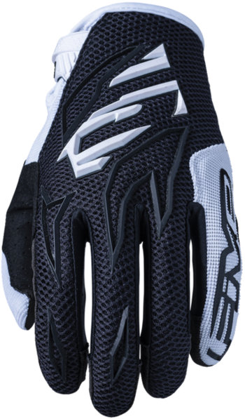 An ultra-ventilated motocross glove. Palm in synthetic leather. Topside in large Mesh for improved airflow. TPR and Velcro adjustment tab. Finger contours in Heavy Lycra. And some clever visual appeal from our designer: the Sonic FIVE logo on the top of the hand is designed to be legible from afar, but not necessarily from close-up.\n\n Wide-cell Mesh + 2-Way Spandex construction (topside and thumb)\n AX Suede synthetic leather (palm)\n Lycra finger contours\n Closure system with TPR + Velcro tab\n CE for offroad use only