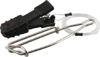 The fishing line is gripped between the soft pads with variable release tension attained by moving the line in or out of the jaws.