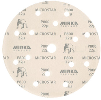 Mirka's abrasive film product, Microstar, has a smooth film backing, selected aluminium oxide grains and a special stearate coating as a protective top layer. Microstar is excellent for achieving a flat and smooth finish prior to polishing. The even polyester backing in combination with optimized coating and stearate treatment ensures a uniform finish and a long lifetime of the product.