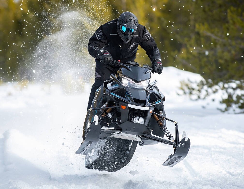 The 2025 Sidewinder L-TX LE is the sled that will perform in all types of terrain. The front suspension features premium FOX Zero QS3-R shocks with Kashima coat, while the dual shock SR137 rear suspension has a QS3 Kashima centre shock and beefy Zero QS3-R 2.0-inch rear shock. The wide stance ARCS front clip and Stryke single keel skis keep you pointed where you want to go and the long travel coupled, rear SRV suspension with 137" Ripsaw II track takes care of the rest. The L-TX LE draws inspiration from the inline 4-stroke engine that was the iconic Apex. If you've never been behind the bars of a Sidewinder and the pure power it offers, you haven't experienced true snowmobile bliss.