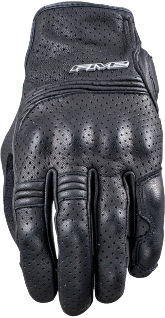 This is the perfect glove for a basic, custom, or classic bike, or a scooter, with its exceptional fit paired with a stellar level of protection. Its sharp look, with its perforated full-grain leather that conceals valuable protective shells and its FIVE metal insignia, allows you to combine it with any outfit, ever so elegantly.\n Full-grain cowhide construction (topside) for durability, perforated for ventilation/full-grain goatskin (palm) for suppleness One-piece PU metacarpal-knuckle and knuckle protective shells, underneath the leather Protective PVC palm slider Palm reinforcement in perforated digital synthetic leather Leather accordion comfort gussets Closure system with leather tab + press-stud and leather on-off pull tab TouchScreen system (thumb and index finger) for touch-screen handling