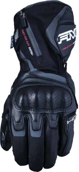 The battery-heated glove as interpreted by FIVE so you can head into the winter season knowing youve got it covered. Hipora breathable-weatherproof membrane. Thinsulate 200 g lining. Heat-insulating cuff gusset to keep warmth inside the glove. Control knob for 3 heating levels. Zip for easy-on/off. Knuckle shells and palm sliders. Leather palm. Digital Pittards palm, index and middle finger reinforcement for better control grip in wet weather. Reflective logo and strip for increased night visibility and safety. Designed for long-distance rides in winter conditions.\n\n Stretch Cordura and synthetic leather construction (topside)/full-grain goatskin for suppleness (palm)\n PU metacarpal-knuckle protective shells underneath the fabric and leather\n PVC protective palm slider\n Heating by separate 7.4v Li-polymer battery\n Easily accessible button with 3 heat levels\n Weatherproof Hipora internal membrane\n Thinsulate 200 g thermal insulation\n Digital Pittards leather palm reinforcement for optimal grip\n Dual closure system with insulation drawstring and zipper