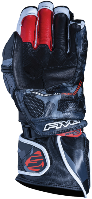 The RFX1 is a glove for a racing track and sports use. The RFX1 incorporates new hulls phalanges PU ventilated and wide hull protection of carbone forearms. It has all the characteristics of a high-end glove oriented performance. This upscale racing glove will delight the discerning sports machine drivers, who favor the sensitivity of the controls and the fitting, without neglecting safety. Signature V-Five\n\nPalm:\n Lining Kevlar Carbon reinforcements Full grain leather for protection Stretch Kevlar for ease Protecting both the palm than the upper region of the hand The Velcro adjustment tab is hidden under a leather safety panel bearing the risk of coming off during a fall\nBack:\n PU knuckle shells ventilated and wide protective shell of carbon forearm Adjustment for reduced weight