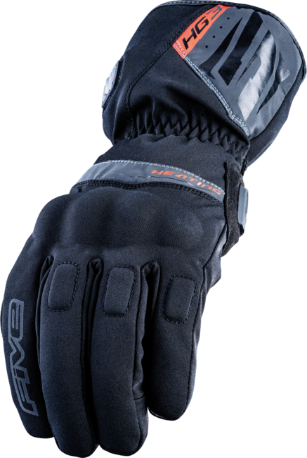 The new battery-heated glove, for city and suburban wear, designed by FIVE so you can head into the winter season knowing youve got it covered. Hipora breathable-weatherproof membrane. Thinsulate 200 g lining. Control knob for 3 heating levels. Palm sliders. Leather palm. Reflective strip on topside for increased night visibility. Intended for those who use their motorbike or scooter over short or medium distances, even in winter, it offers extreme comfort in daily use (light, warm, good freedom of movement). City and suburban use.\n\n Stretch Cordura and full-grain goatskin construction (topside)/full-grain goatskin for suppleness (palm)\n Memory foam metacarpal-knuckle protection underneath the leather\n PVC protective palm slider\n Heating by separate 7.4v Li-polymer battery\n Easily accessible button with 3 heat levels\n Weatherproof Hipora internal membrane\n Thinsulate 200 g thermal insulation\n Closure system with elastic band and wide Velcro strip