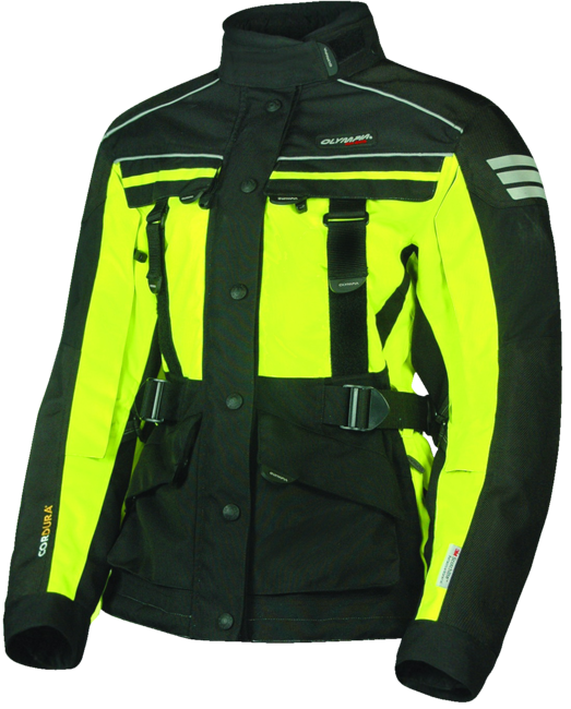 Outer shell constructed in coated 500 and 2000 denier Cordura fabric\n Waterproof/breathable membrane adds double waterproof protection\n Thermolite insulated liner jacket\n Airflow Ventilation System at chest, arms and back\n Velcro lock down torso straps at chest pocket vents create adjustable air flow\n Double storm placket front closure\n Removable CE Motion Flex armor at elbows and shoulders\n Removable CE approved Motion Flex articulated back protector\n Custom Fit detailing at collar, cuffs, elbows and waist\n Full circumference neoprene collar insert\n 3M Scotchlite reflective piping at front, sides and back\n Thermo Weld reflective detail at side arms\n Five zippered waterproof storage pockets and a large zippered waterproof rear storage pocket\n Stow away hood with 360 neck gator\n Quality YKK zippers