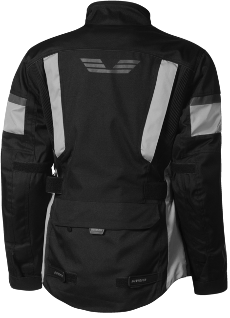 LAYER 1 - Outer Shell\n Outer Shell combination of 600 D poly EVO THREAD fabric and 1000 D ballistic poly reinforcement panels\n Quality YKK zippers\n Removable CE approved Motion Flex armor at elbows and shoulders\n Waterproof laminated AquaRes membrane\n Full circumference neoprene collar insert\n Custom Fit detailing at collar, cuffs, elbows and waist\n Reflective heat weld detailing at front, sides and back\n Double storm placket front closure\n Five exterior zipper pockets and two interior stash pockets\n Fold back ventilation System at chest, upper arms and back\n 8 connecting zipper for pants\n Removable CE approved Motion Flex articulated back protector\n Cool mesh airflow lining\n\nLAYER 2 - Insulex Insulation\n Full sleeve zip out Insulex thermal layer with two storage pockets\n This cozy thermal layer is both lightweight and packable to ensure multi-season riding comfort\n\nAdditional Features\n This jacket also offers strategically placed venting at the shoulders, upper arms and back torso panels\n Durhams venting system allows air to flow between the outer shell and the AquaReslaminated waterproof membrane, thus cooling the inside of the jacket