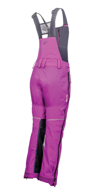 Designed to coordinate with our womens Alma jacket.\n\nLAYER 1 - Outer Shell\n Adjustable suspenders\n Two layer Nylon stretch outer shell construction\n Reliable, waterproof YKK center front zip and side seam\n Water resistant side opening and leg pocket zippers\n Waterproof, breathable, fully seam-sealed\n EVA knee pads for comfort\n Stretch front upper and side bib panel\n Durable water repellent treatment for rain and stain protection\n Adjustable waistband with elasticized tab and velcro system\n Cordura panels on critical zones\n Reflective welded tape at front and back\n Carbon coated Nylon 2nd layer shell at inner leg\n Adjustable woven powder cuff with lace hook and silicon gripper elastic\n\nLAYER 2 - - Thermolite Insulation\n Removable 180g quilted liner long short